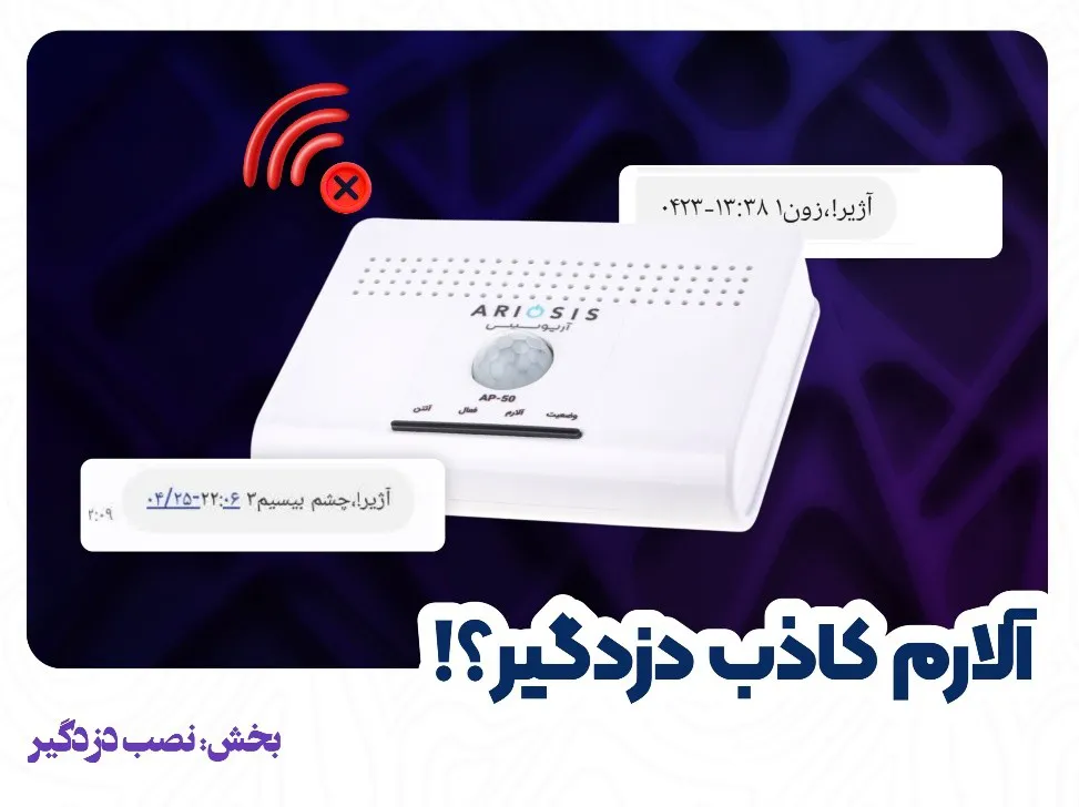 گاهی اوقات ارسال هشدار های نادرست از سمت دزدگیر ، به دلیل ضعیف شدن باتری سنسور های چشمی و مگنت درب و پنجره است که این مسئله با تعویض باتری سنسور ها برطرف میشود.